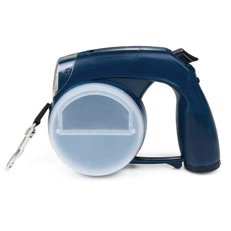 Crafted with a durable ABS plastic shell, this leash boasts an ergonomic, anti-slip soft handle that fits your hand like a glove. It even features a convenient snack/poop bag dispenser for those unexpected moments.